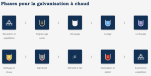 Afin de garantir une bonne adhérence des couches d’alliage, le procédé suit une séquence rigoureuse en 10 étapes avant l’immersion dans le bain de zinc :
