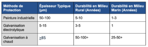Contrairement aux peintures ou aux revêtements de surface, la galvanisation à chaud offre une double protection :